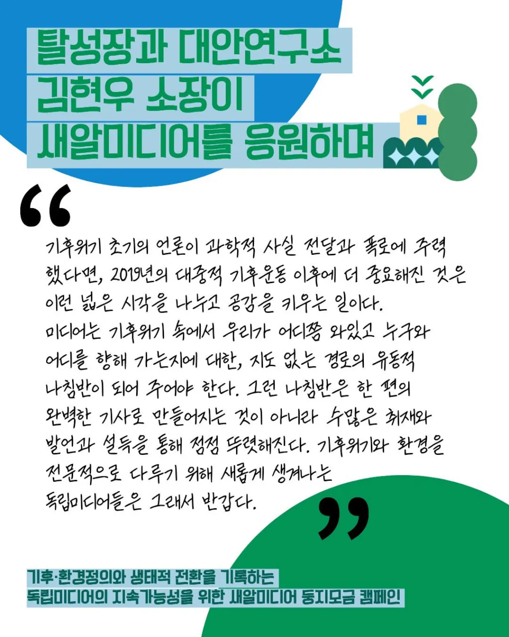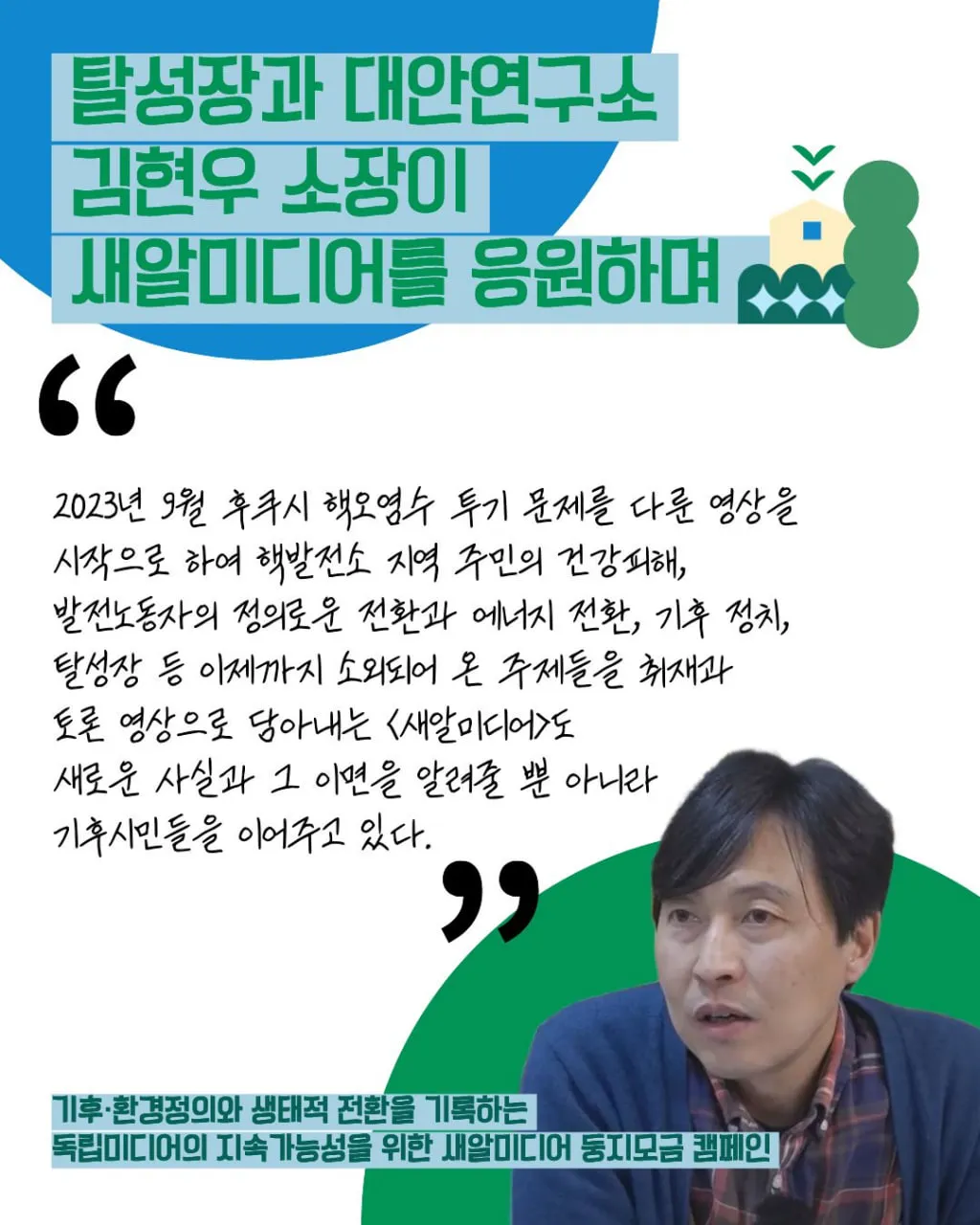 탈성장과대안연구소 김현우소장이 새알미디어를 응원하며