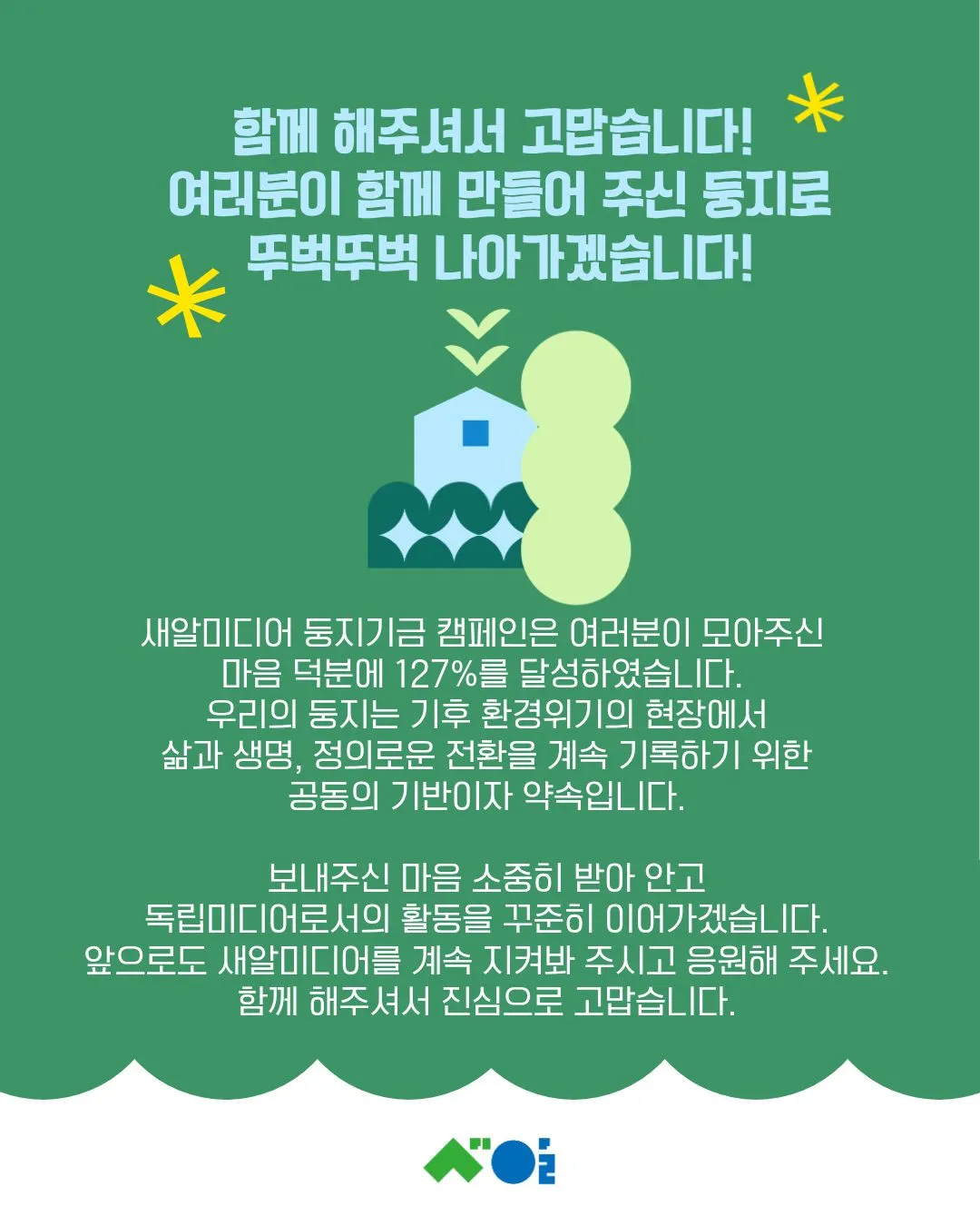둥지모금 캠페인은 끝났지만 아직 새알미디어를 응원할 방법이 있습니다!